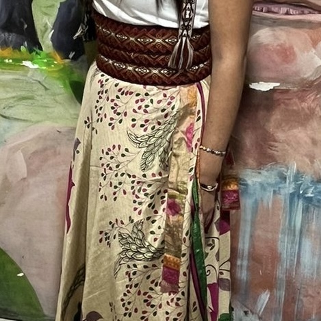 Prenda tradicional que forma parte del vestuario de comunidades indígenas. Esta falda refleja la pureza que recibimos a través del reflejo de la naturaleza.